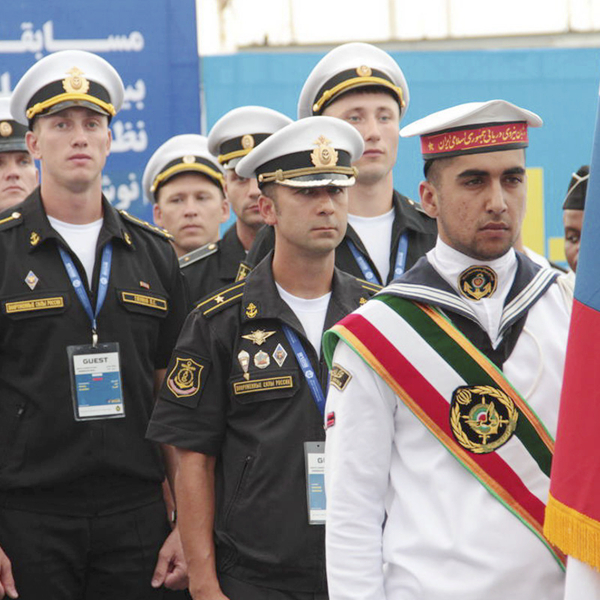 去年8 月,伊朗水手同俄羅斯海軍人員參加軍事交流活動。網絡圖片