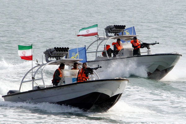 伊斯蘭革命衛隊快艇在霍爾木茲海峽巡邏。網絡圖片