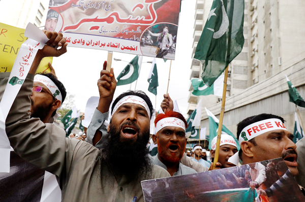 巴基斯坦昨日爆發抗議活動,反對印度政府的單邊政策。路透社