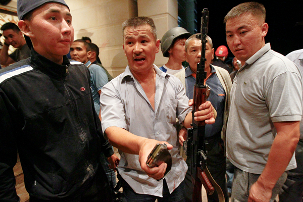 吉爾吉斯前總統阿坦巴耶夫的武裝支持者在國家安全部隊行動期間看守他的房子。路透社