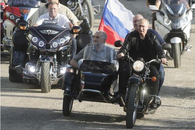 同一天,普京骑着“挎斗”摩托车亮相克里米亚车展,随后遭到美乌的抗议。
