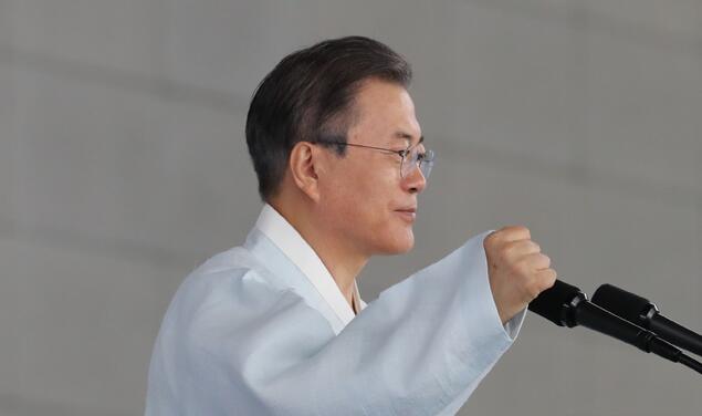 【香港商報网訊】據韓聯社報道,韓國總統文在寅昨日出席光復節74周年慶祝儀式並致辭。他表示,若日本此刻走對話與合作之路,韓方願意配合,並將與其一道打造公平貿易與合作的東亞。他承諾,在任期內鞏固推進朝鮮半島無核化與和平機制,並在此基礎上開啟「和平經濟」,走向統一。