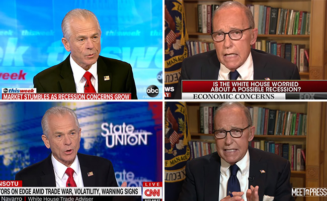 納瓦羅(左)和庫德洛在一天內出現在四個電視節目裏“辟謠”經濟衰退論 節目截圖