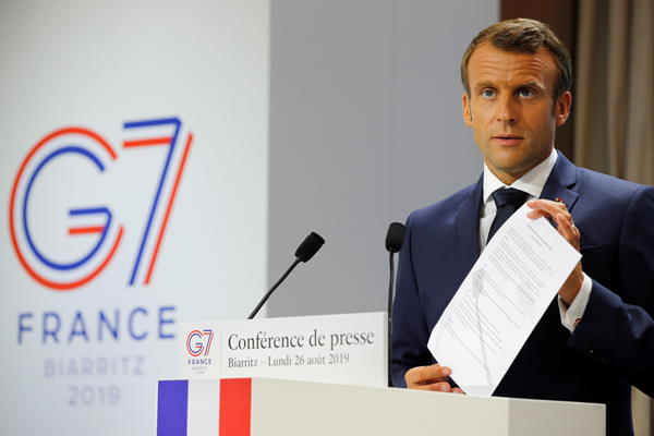 【香港商報網訊】為期3天的G7峰會26日在法國比亞里茨閉幕。與會領導人會後發表了一份僅有一頁紙的聯合聲明,簡短提及國際貿易、伊朗核問題、烏克蘭和利比亞等問題。分析人士指出,寥寥數語的「一頁聲明」缺乏實質內容,難掩G7內部的深刻分歧,也凸顯其影響力不斷下滑。