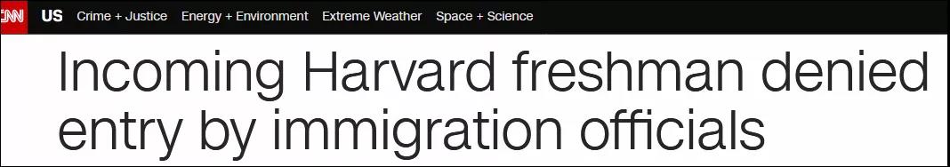 哈佛大學發言人對此回應稱,“校方正與該名學生的家人和有關部門密切合作,解決此事,以便他能在未來幾天加入到同學們當中。”