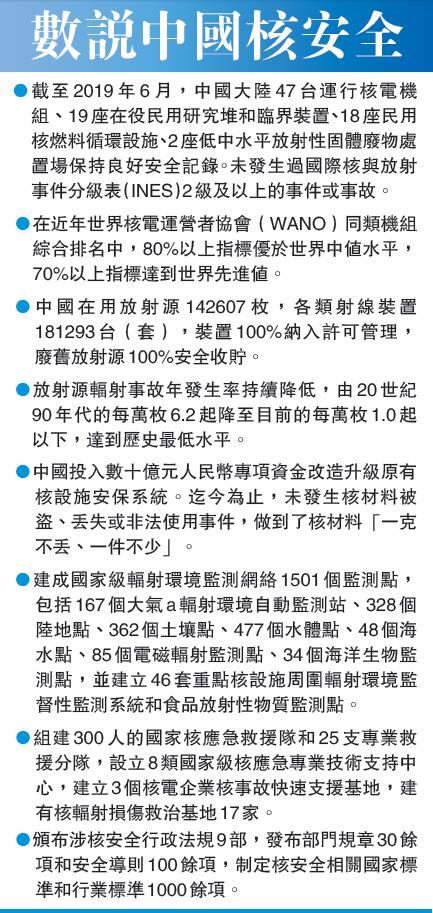 【香港商報网訊】中國官方昨天發布首份《中國的核安全》白皮書。對於外界關心的核電安全問題,白皮書指出,中國核電機組性能指標總體處於良好水平,截至2019年6月,已安全穩定運行累計300餘堆年。在近年世界核電運營者協會(WANO)同類機組綜合排名中,80%以上指標優於世界中值水平,70%以上指標達到世界先進值。