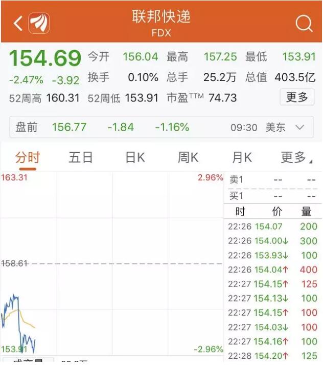 从联邦快递的股价来看,历史最高峰在已经在2018年1月份出现,当时股价涨到了270.91美元,随后一路下滑,今年8月创下147.82美元新低。市值蒸发约321.3亿美元,折合人民币高达2300亿元以上。