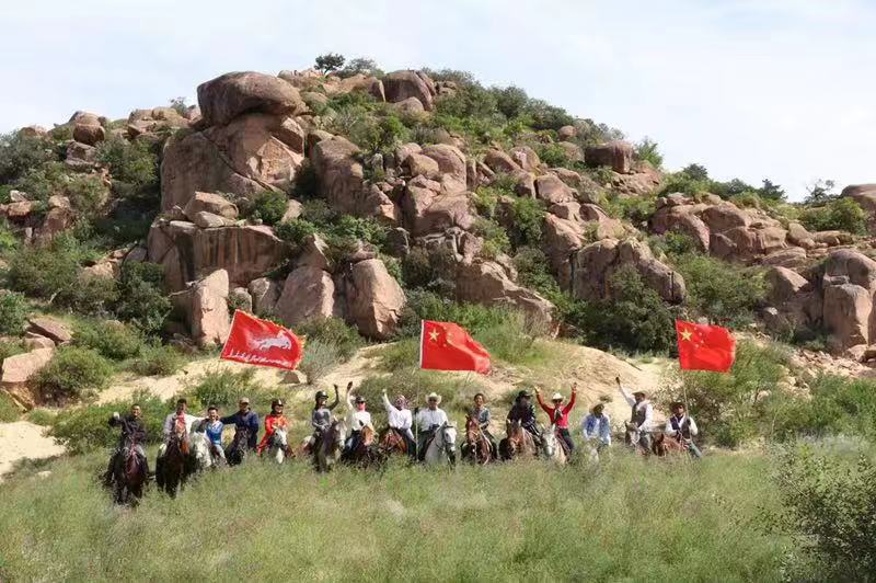 參加穿越的馬友們來自全國各地,還有一名香港同胞和一名台灣同胞,抱著對祖國山河的熱愛和對馬背旅行的喜愛,自發組成了這次穿越的活動。他們一起走過了草原、叢林、沼澤、湖泊、河流、沙漠,一同經曆了烈日、狂風、暴雨、彩虹、星空。無論是從路程之遠,強度之大,都是烏蘭布統野騎穿越活動史上前所未有的。隊員們一路相互扶持,精誠團結,不拋棄,不放棄,終是初心不改,馬到成功。