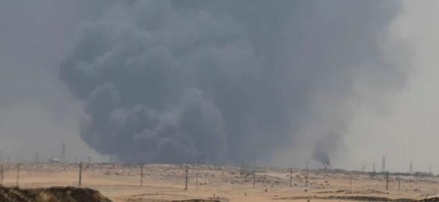 沙特两处石油设施14日发生火灾,浓烟滚滚。图源:路透社