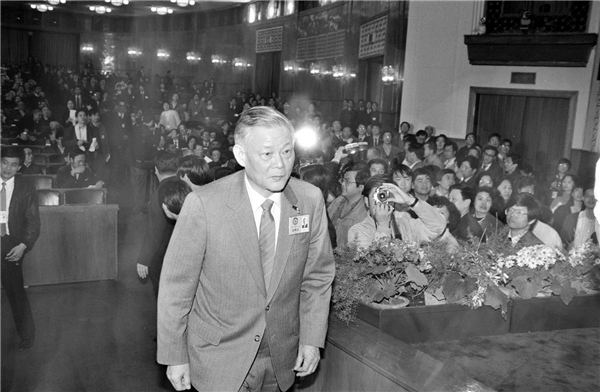 1991 年4 月4 日,全國政協七屆四次會議在北京人民大會堂閉幕。新當選政協副主席的葉選平走上主席台。新華社