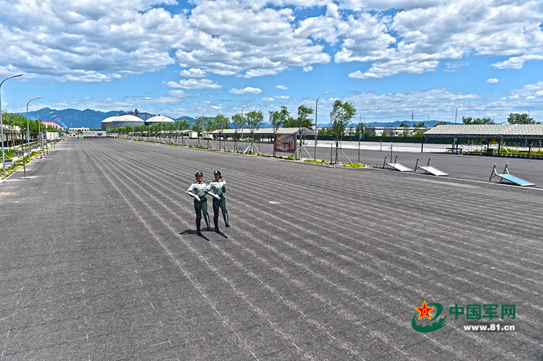 午休時間,1排面第1名王怡和第2名胡揚凡兩名隊員相約到訓練場,進行把方向、控步幅針對性訓練。心中有信仰,腳下就有力量,官兵們千萬次重複正步訓練在水泥路上踏出“斑馬線”。