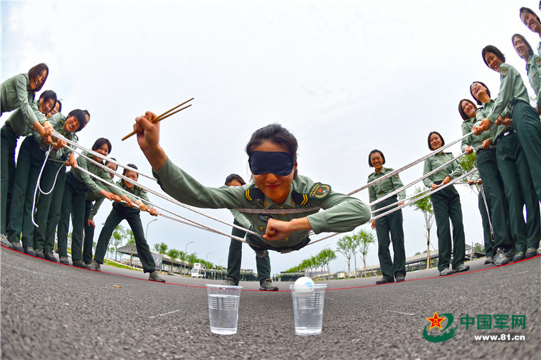 女兵們苦練硬功。她們一次又一次向極限發起挑戰,絲毫沒有松懈。在燈光下,女兵的身影顯得格外美麗。