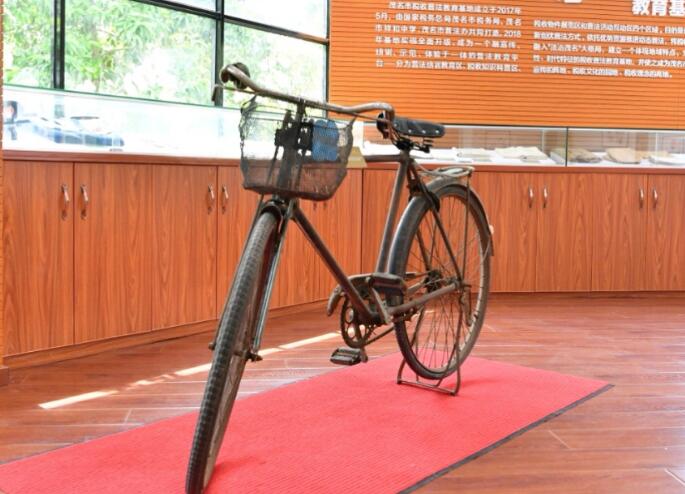 【香港商报网讯】在茂名市稅收普法教育基地的展覽區中,擺放着一輛刻上了歲月痕迹的鳳凰牌單車,上面懸掛着「當年徵稅交通工具」的藍色標籤,車把、齒輪和鐵皮上爬滿的斑斑銹跡,承載着不少老稅干酸甜苦辣的稅月回憶。稅務部門身處承擔國家稅款徵收工作的第一線,因應時代的號召和改革浪潮不斷發展前進。一輛舊單車,似乎在默默訴說著稅收改革事業的光榮歲月……