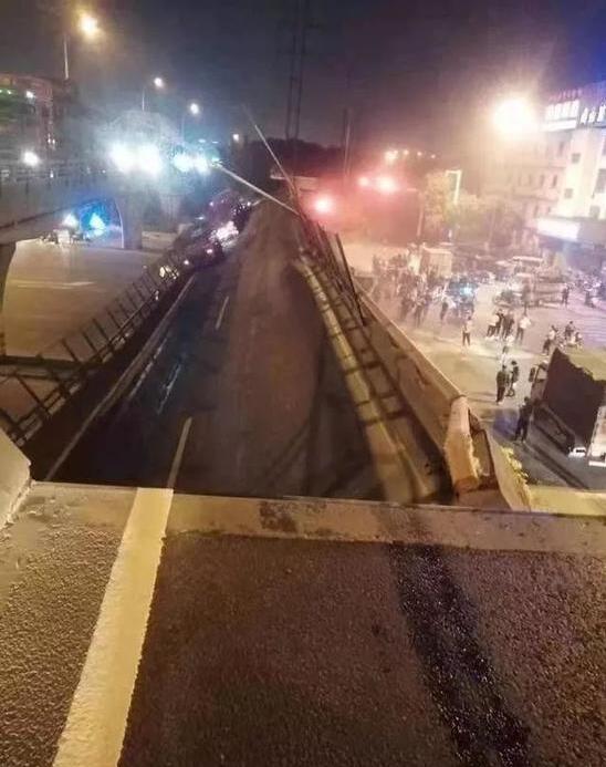 一位目击者王先生表示,他开着电瓶车驶过事发桥下不久,桥就坍塌了,侥幸逃过一劫。“大概行驶出了400米左右。”王先生称,他在桥下驶过时并未发现任何异样,根本没有想过高架桥会在一分钟后坍塌。