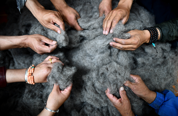 圖為青海一扶貧產業示範園內,員工檢查犛牛牛絨。資料圖片