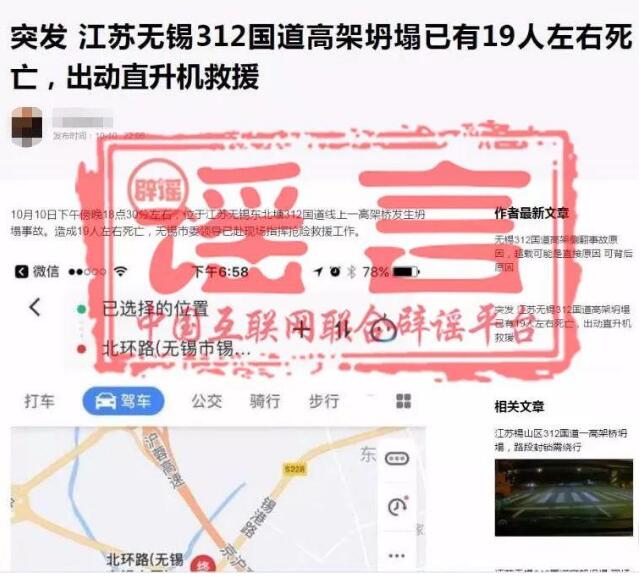然而,除了人员的伤亡与财产的损失,此次无锡高架桥侧翻事故,也如大部分安全事故一样,未能幸免地遭到了谣言的缠缚。