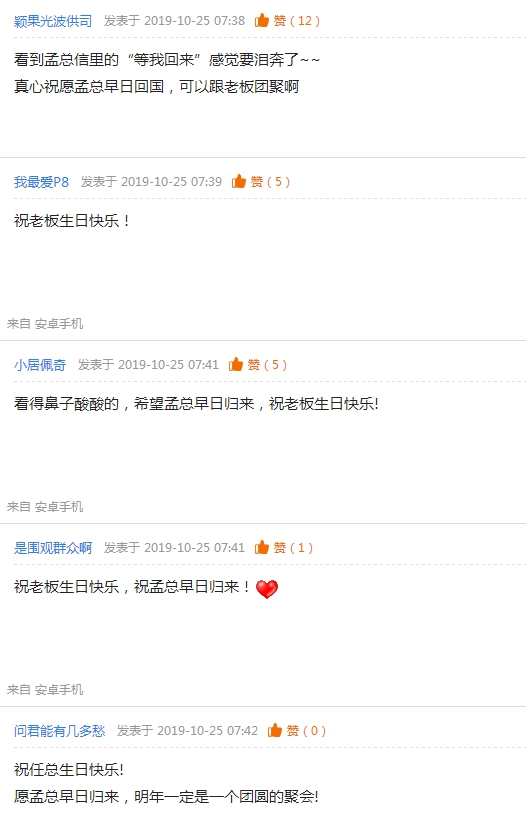 在這條孟晚舟朋友圈文章下面,許多華為員工紛紛留言:看到“等我回來”那句感覺要淚奔,“希望孟總早日歸來”!還有人說,“光鮮的背後都是磨難”。↓↓