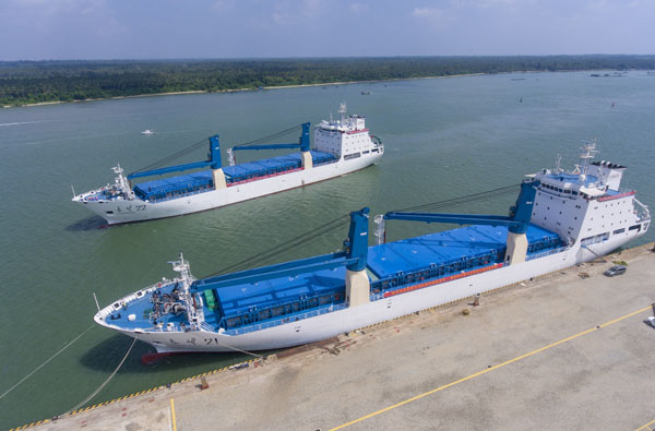 火箭運輸船隊經過5晝夜航行抵達文昌。 新華社