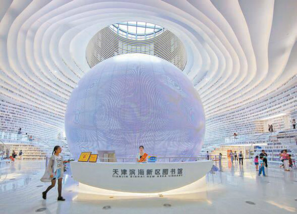 在文化惠民方面,新區建立了五館一廊的濱海文化中心,通過圖書館、美術館、科技館引進先進文化;建立圖書館總分館體系,通過圖書館、街鎮分館、基層服務點三級體系將文化送到鄉間地頭,實現覆蓋全區的先進文化引領。作為馳名中外的網紅圖書館--濱海新區圖書館除了總館、街鎮分館,就連每個基層服務點都配有1500餘冊圖書。圖書館在公益活動方面也持續發力,每年舉辦講座、展覽、閱讀推廣等活動幾百場。