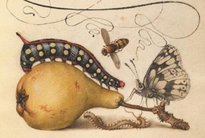 毛毛虫、马峰与飞蛾,出自16世纪欧洲古书《了不起的书法古迹》。