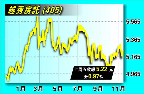 未來,隨着上海證券交易所遷移至上海越秀大廈附近,反映該地段將日益重要。截至上周五止(15日),越秀房產信託基金的預期息率達6%,具一定投資吸引力。