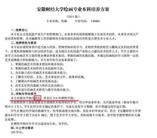 这里还有一个信息大家要留意,即安徽财经大学绘画系的本科“基本学制”,是【4年】期的。