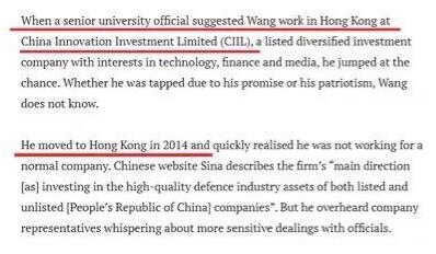 比如这个2015年才从安徽财经大学毕业,之后几年更在该校所在的安徽蚌埠市牵扯上多起民事官司,并在2016年和2019年又两次涉及诈骗刑案的王立强,是如何在澳大利亚媒体的报道中,做到“2014年就移居香港”,之后在一家名为“中国创新投资有限公司”的企业“就职”的呢?