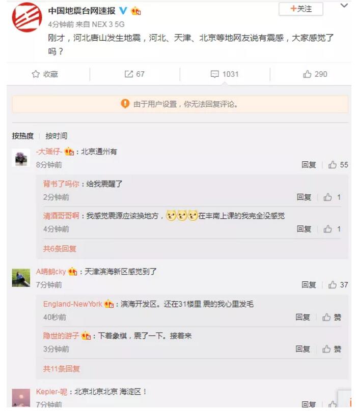 据河北省地震局官方微博发布消息,地震发生后,河北省地震局第一时间联系唐山中心台和唐山市应急管理(防震减灾)局收集震情灾情,并第一时间派出唐山中心台和唐山市应急管理(防震减灾)局人员赴现场了解情况。同时严格执行24小时带班值班,密切关注社会舆情,做好舆情引导工作,立即联合中国地震台网中心进行震情会商,分析研判地震形势。