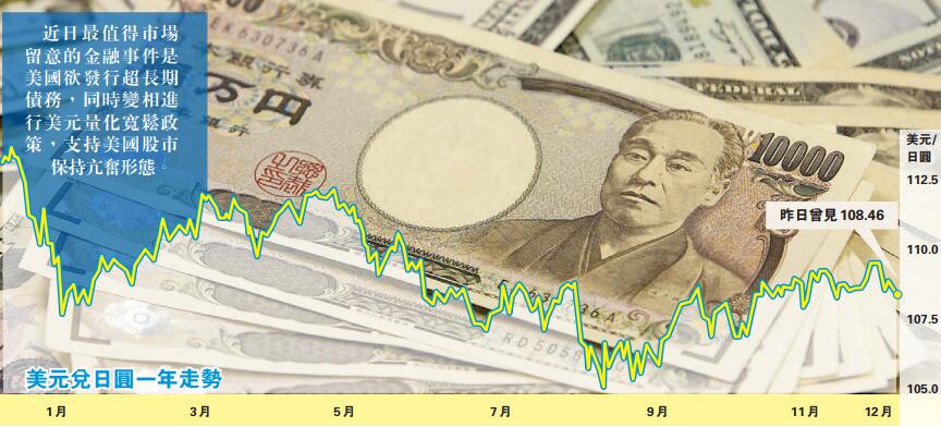 另一方面,匯市在弱美元形勢下,歐元和日圓相對出現強勢,當中又以日圓匯率值得深入思考。由於當前日本經濟仍然低迷,日本政府一直希望以弱勢日圓打開競爭力,但受制於美國的壓力,形成匯率變化總是在一特定區間內:美元兌日圓106至112。在此區間內,108水平可沽出日圓,基本上可以達到財息兼收。若不幸碰到逆境,日圓上升幅度也不會太高,風險是可控的,有充分逃生機會,特別是美國當前經濟數據見好,加上不減息,支持美元,日圓有很大機會借勢下滑。