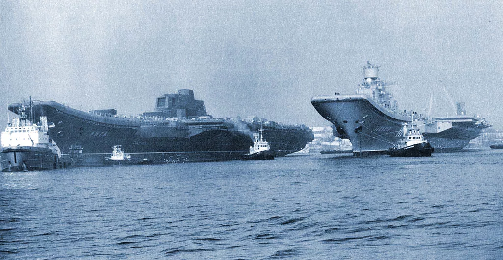 隨著蘇聯政局的動蕩和俄烏兩國相繼宣布獨立,俄海軍決定將尚留在黑海水域的“庫茲涅佐夫”號在部分艦員未到位的情況下緊急調往北方艦隊服役。而“庫茲涅佐夫”號未能建成的姊妹艦“瓦良格”號則在蘇聯解體後被中國買下,成為了現在中國人民解放軍海軍的第一艘航空母艦“遼寧”號。
