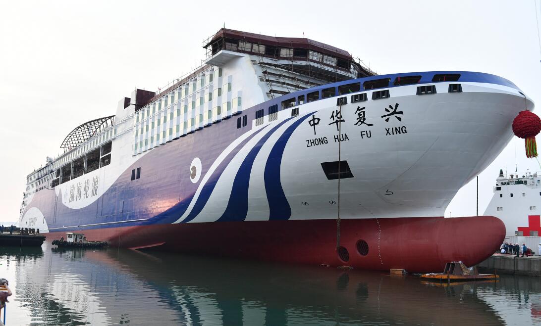 圖為國家參股的黃海造船公司自主設計、自行建造的郵輪型客滾船——「中華復興」號。中新社