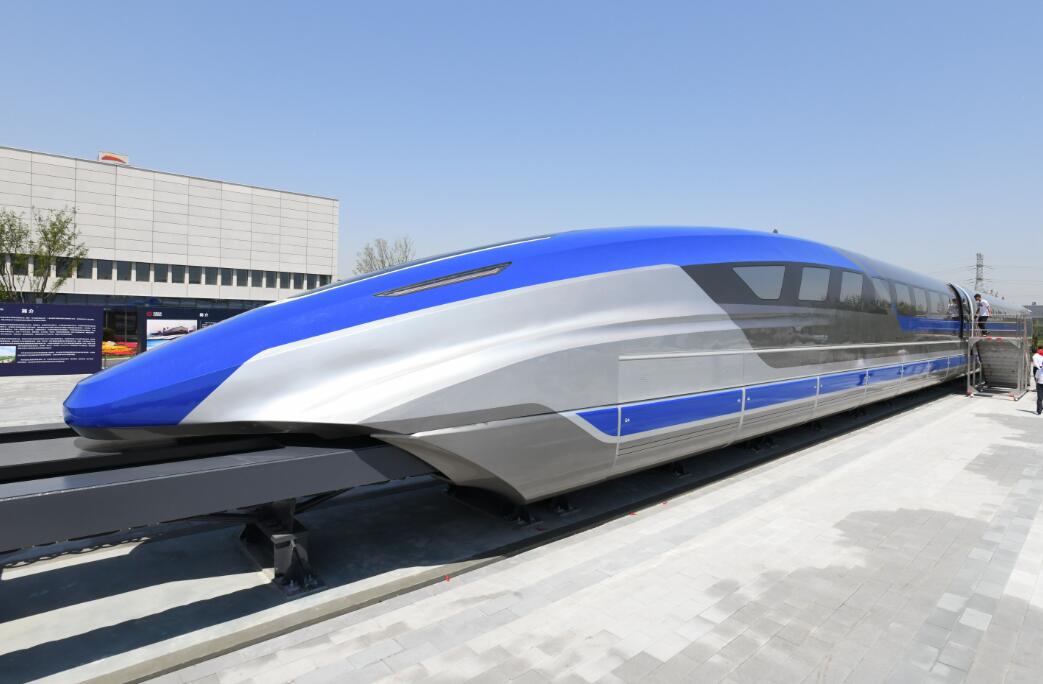 中國中車於去年8 月開啟南北車重組,圖為中車今年下線的時速600 公里高速磁浮試驗樣車。新華社