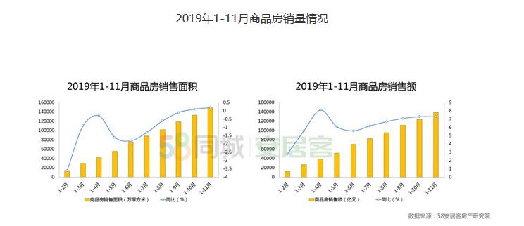从国家统计局公布的数据来看, 1—11月份,商品房销售金额139006亿元,增长7.3%,其中住宅销售额增长10.7%,从数据来看前11个月销售金额已接近14万亿元,而去年同期仅12.9万亿元。因此2019年全年破15万亿元已无悬念,商品房的GMV已经迈向了历史新高点。