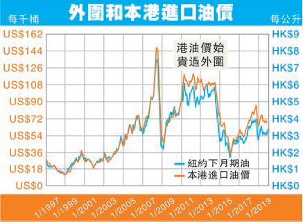 2011年前,倫敦期油價跟紐約油價相若,但近九年倫敦油高出幾至逾廿美元不等,現距5元。美國油供應多、歐洲油質較好、較近中東等皆原因。本港有進歐油,自然顯得貴了!