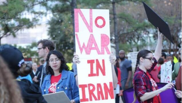 当地时间1月5日,美国休斯敦的民众举行反战集会,谴责美军炸死伊朗指挥官苏莱曼尼。 中新社