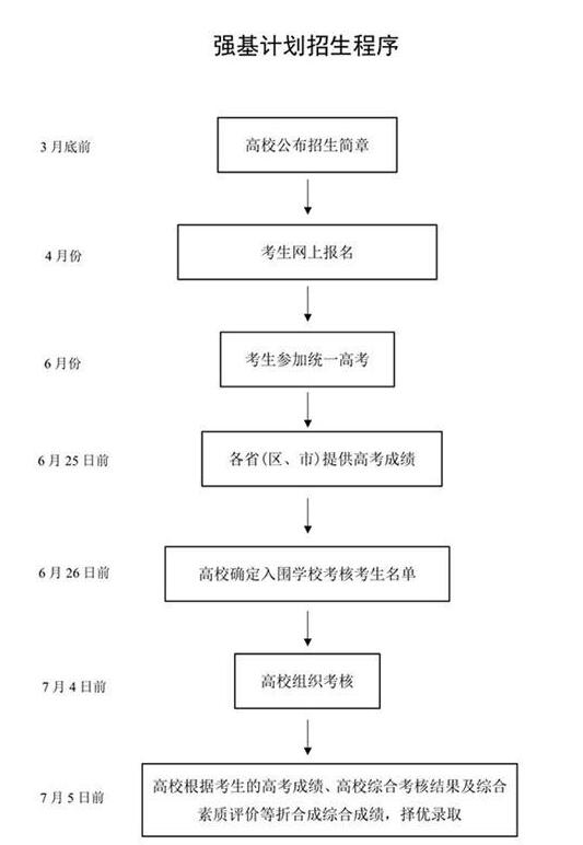 起步阶段,在部分“一流大学”建设高校范围内遴选高校开展试点。相关高校可向我部申请并提交相关专业的招生和人才培养一体化方案。我部组织专家综合考虑高校的办学定位、人才培养质量、科研项目及平台建设情况、招生和人才培养方案等因素,按照“一校一策”的原则,研究确定强基计划招生高校、专业和规模。2020年起,不再组织开展高校自主招生工作。