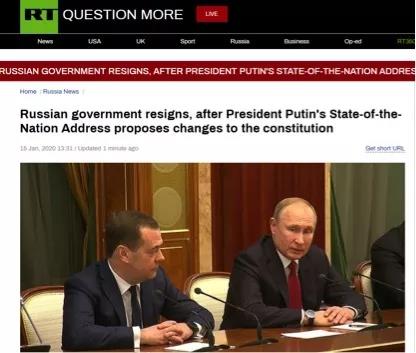 综合外媒报道,此次俄罗斯政府突然全体辞职,与俄罗斯总统普京提出“修宪”有关。梅德韦杰夫称,由于总统提出的建议会大大变更俄罗斯的权力制衡,所以现任政府应当辞职,并重新组成新的政府。