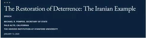 从美国国务院发布的这一讲话信息来看,蓬佩奥是在美国时间周一在美国斯坦福大学的胡佛研究所发表的这番关系美国“威慑”战略的讲话。