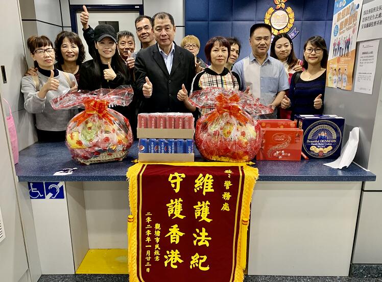 洪錦鉉代表致送「維護法紀 守護香港」的錦旗以表心意。眾人更拍下短片向全港市民送上祝福,「警民同心,維護法紀,守護香港,我哋祝願,人人安居,家庭和睦,社區安寧,社會和平,香港繁榮穩定,新年快樂」。
