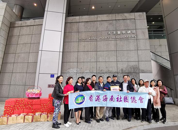 下午2时,香港海南社团总会常务副会长陈美思、简昌国等也带领海南乡亲到警察总部慰问。家庭團聚會40名會員到灣仔警察總部慰問警察以表支持及關心。大家看到警察,都熱情握手及為他們打氣!會員還自制心意卡致送警察,場面溫馨。