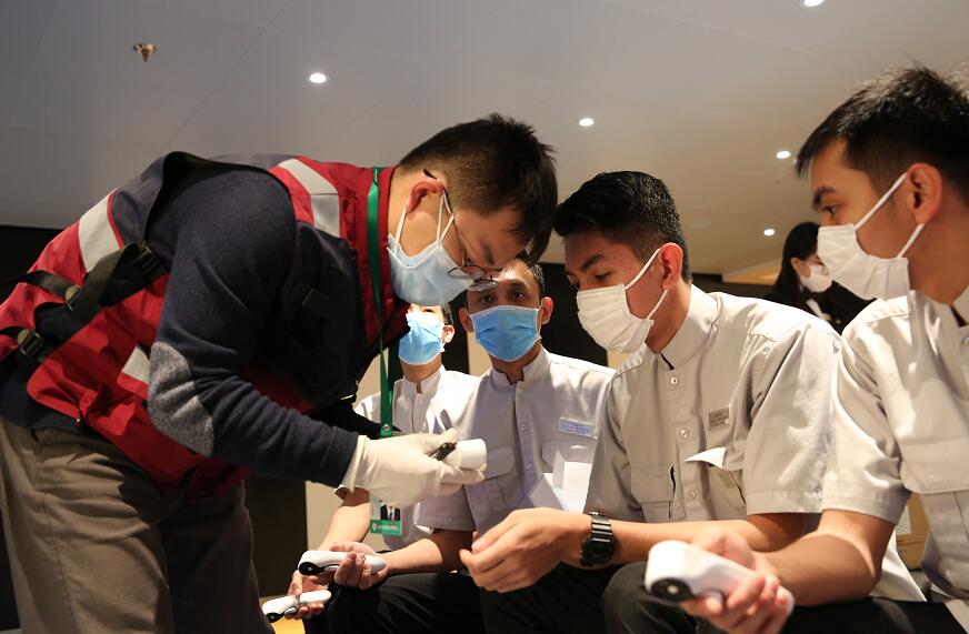 在深圳市委、市政府指挥下,南山区委区政府、市卫健委、市文体旅游局、市交通运输局、海关、边检、蛇口邮轮母港、邮轮公司等第一时间成立应急处置工作组,启动应急预案。鉴于船上人员多、空间密闭等情况,决定该邮轮乘客不下船,由专业人员登船进行排查检测。