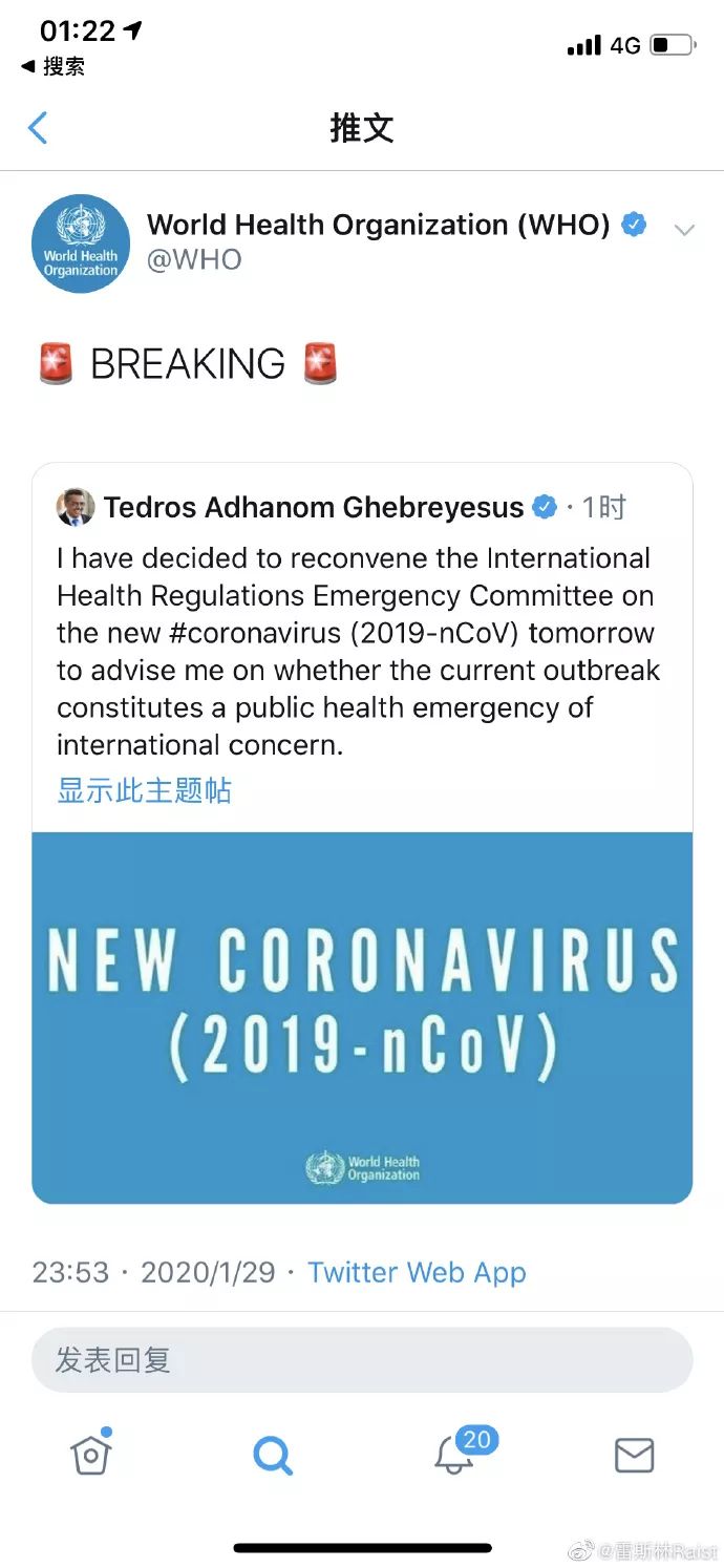 【香港商报网讯】因为中国乃至全世界疫情的发展,WHO决定再次召开会议,决定是不是要把这次疫情列入PHEIC(国际健康紧急事件。)