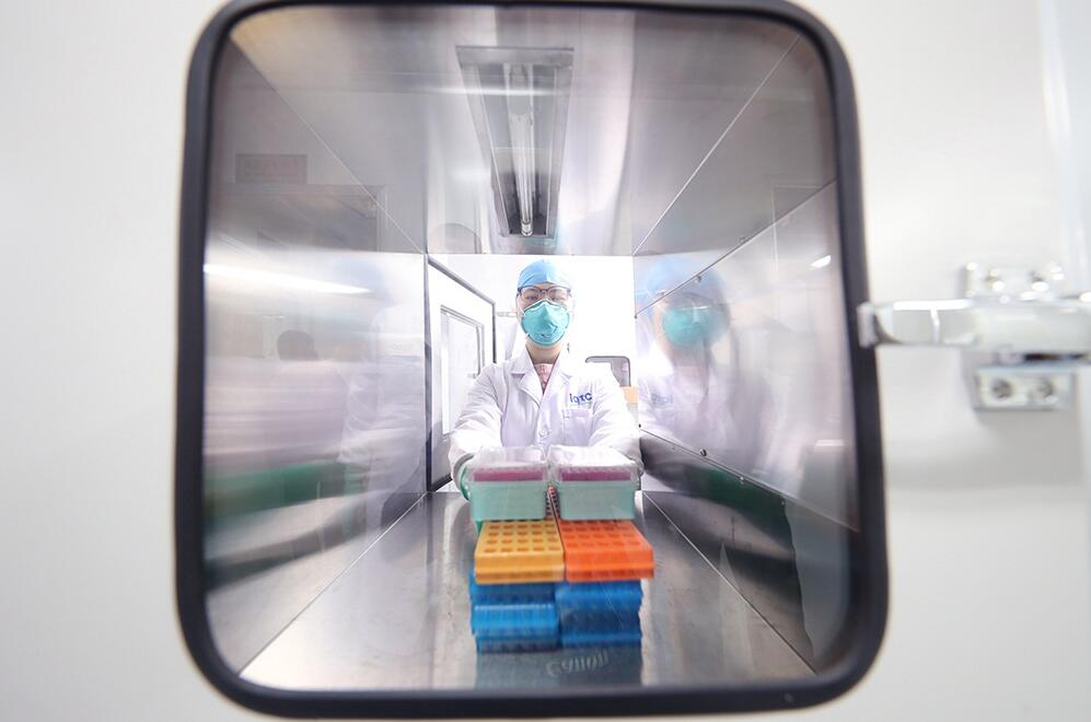 防护衣、口罩、面屏、头套、手套、防水靴套,进入工作状态的实验室人员从头到脚“全副武装”,取样、加试剂……有条不紊地进行着各项实验操作。