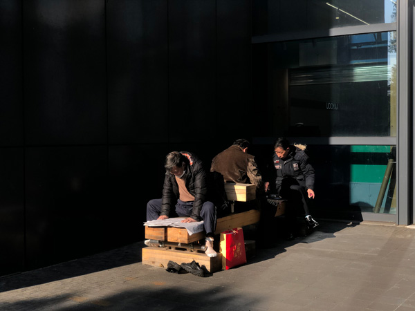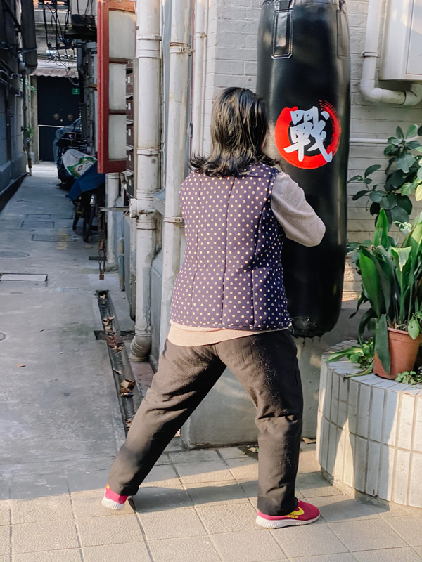 2月1日,上海里弄里,独自打沙包的老人。 本文图片均由澎湃新闻记者 周平浪 图