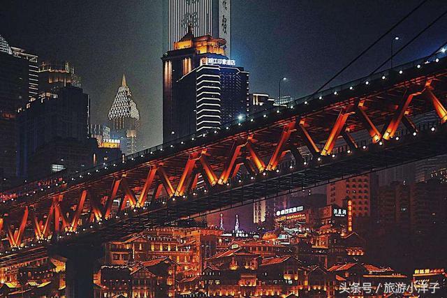 洪崖洞是最能反映重庆建筑风格的地方,傍晚的洪崖洞灯光璀璨,人流如蚁,空气都给人以窒息感。挤出人群,到嘉陵江大桥上去远摄洪崖洞,那高低叠错的建筑轮廓被橘黄色的暖灯装点得灿烂辉煌,与嘉陵江两岸的建筑外灯相映成趣,构成一幅山城夜景。
