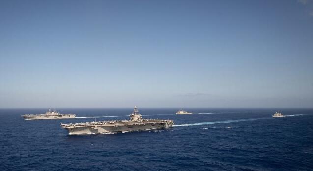 近日美国舰机频繁出现在南海地区,值得警惕。1月28日,美国海军两艘濒海战斗舰以编队形式在中国南海海域航行。这两艘濒海战斗舰分别是LCS-8“蒙哥马利”号和LCS-10“吉佛兹”号,当时正在进行轮替部署任务交接。