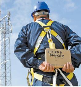 華為作業人員在烈日下進行高空作業。 資料圖片