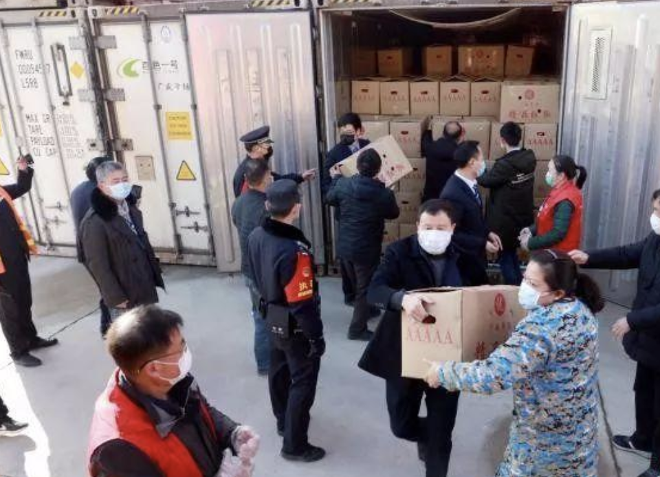 资料图:广西援助湖北物资专列抵达,工作人员组织缷货 陈钰 摄