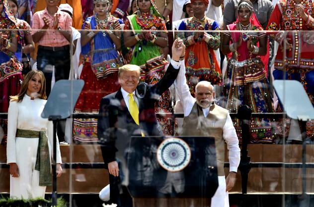 据法新社24日报道,特朗普在大型板球场收获了“隆重欢迎”,与印度总理莫迪一同参加这场名叫“你好,特朗普(Namaste Trump)”的活动。艾哈迈达巴德是莫迪的故乡,世界多国领导人在访问印度的旅程中都曾到访此处。特朗普印度之行首站从这里开始,无疑是在展现莫迪与特朗普间的“密切关系”。