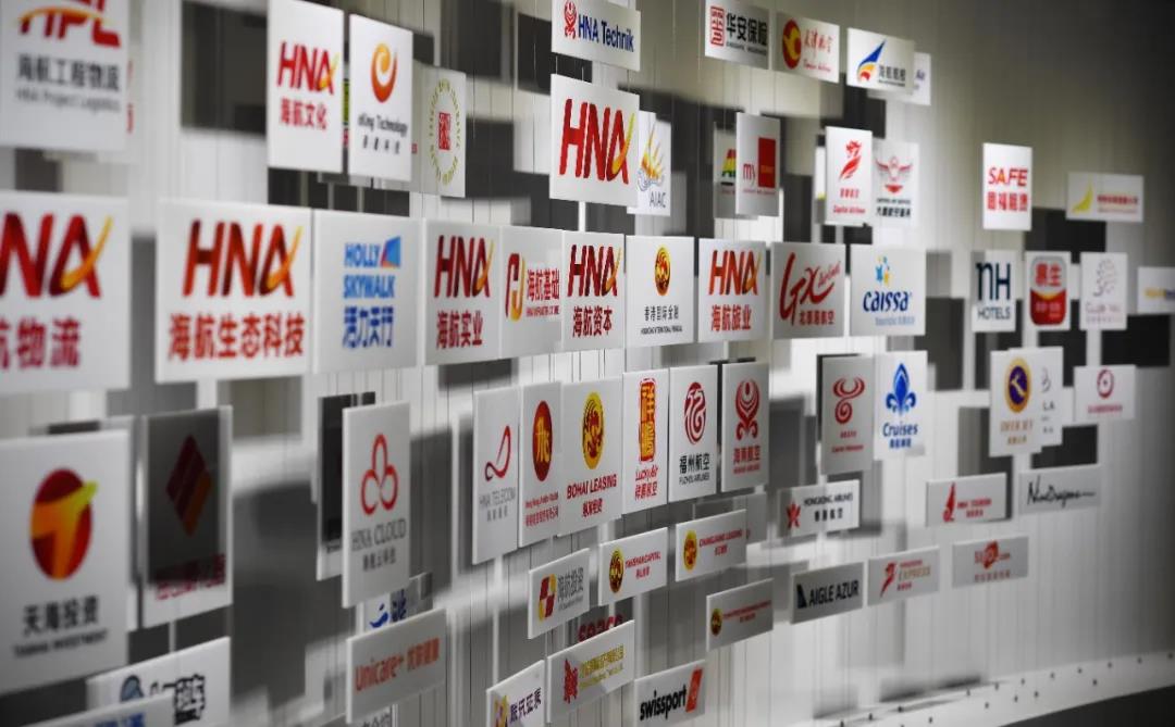 2017年,海航集团总部展览厅内展示其各产业板块的LOGO墙